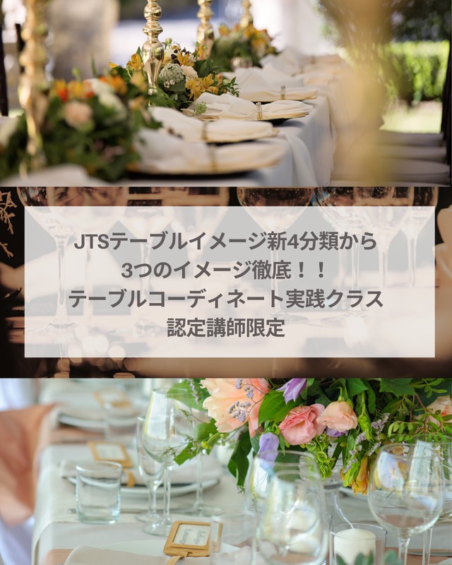 【JTS名古屋校◾️1日で習得できる✨2月開講◾️JTSテーブルイメージ✨新4分類✨から3つのテーブルコーディネートの実践!!ひたすら実践クラス✨認定講師限定】