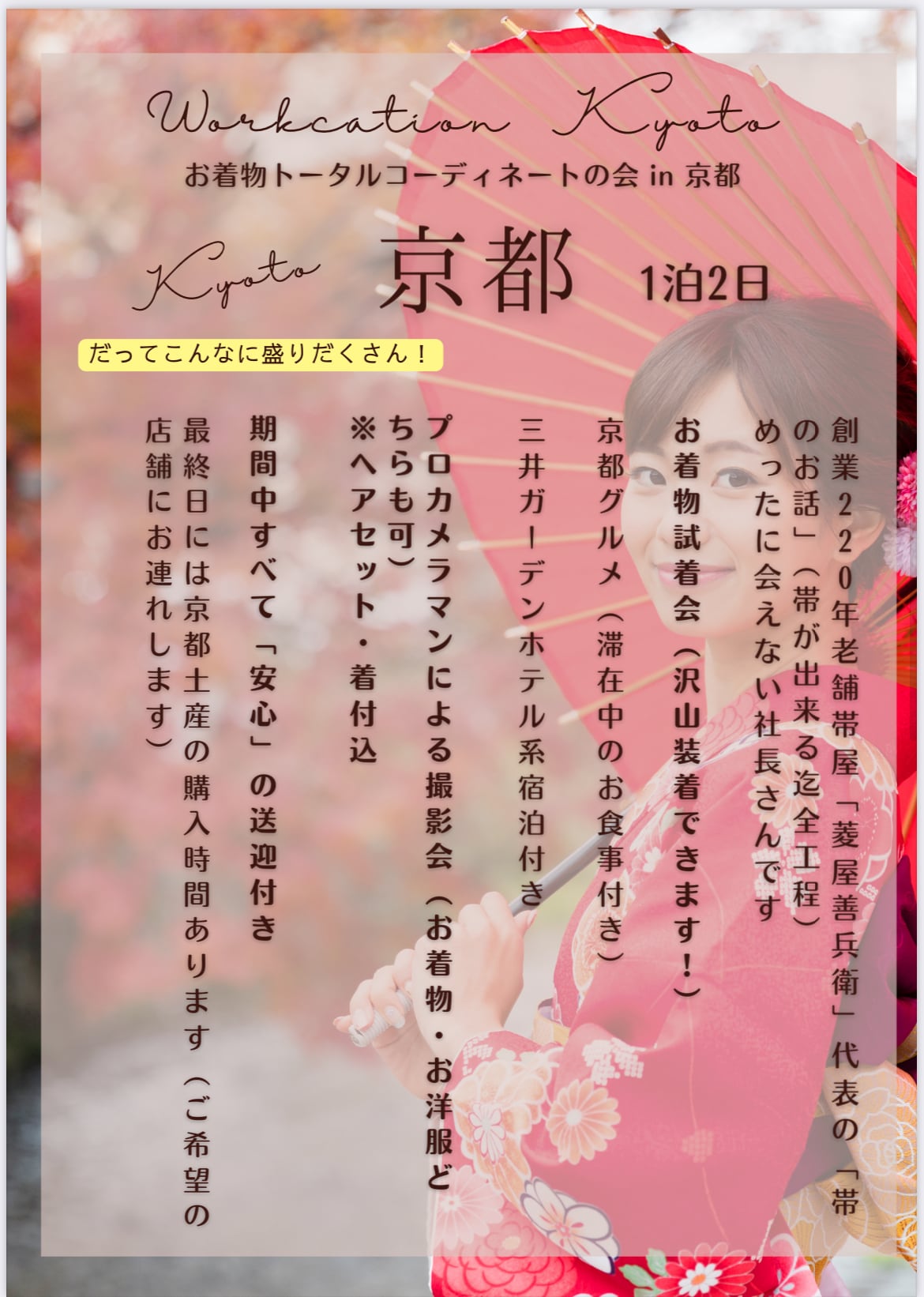 【早割お得◾️特別価格◾️2026年1/19〜1/20 ◾️Workcation Kyoto〜ワーケーション京都〜✨JTSお着物トータルコーディネートの会 】